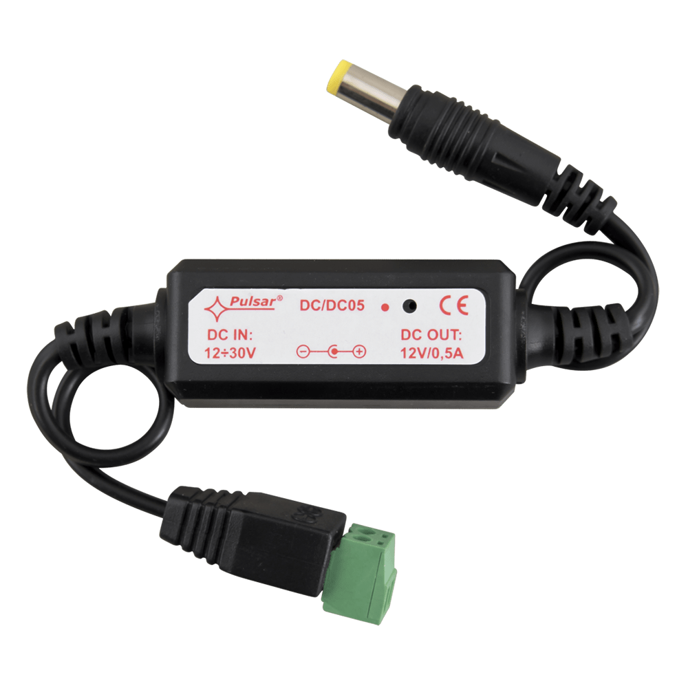 DC/DC05 je učinkovit pretvornik, ki omogoča napajanje naprav z napetostjo 12-30 V DC in izhodno močjo 0,5 A pri 12 V DC.